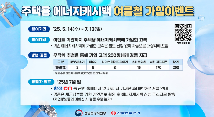 - 에너지캐시백 가입 시 자동 응모